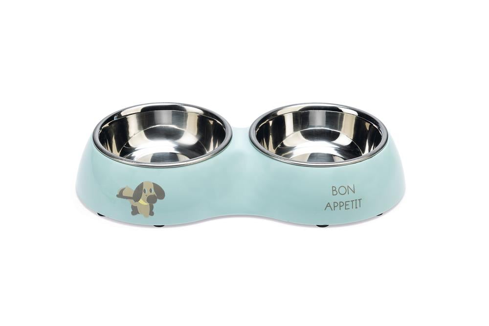Beeztees Köpek İkili Mama ve Su Kabı, Paslanmaz Çelik, Turkuaz, 27x14cm, 2x160ml