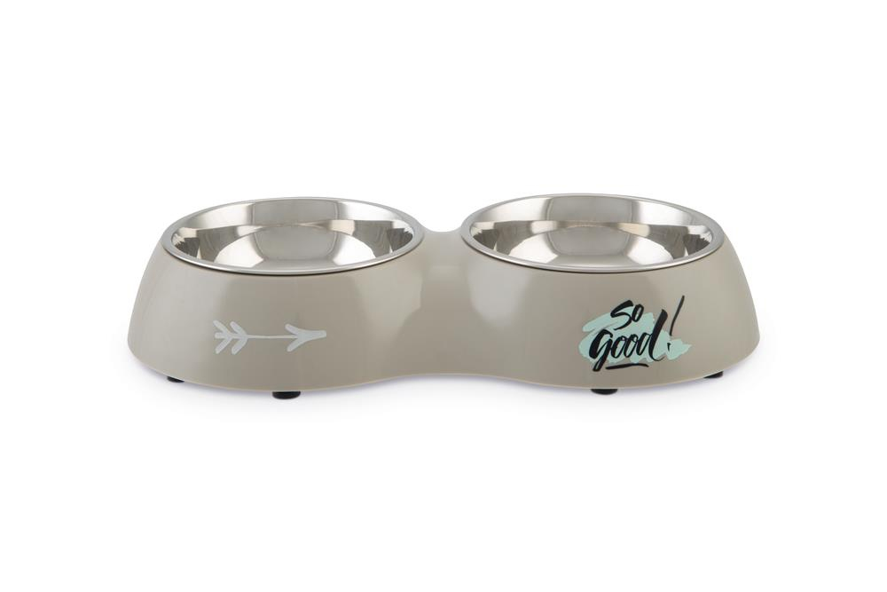 Beeztees Köpek İkili Mama ve Su Kabı, Paslanmaz Çelik, Gri, 34x17,5cm, 2x350ml